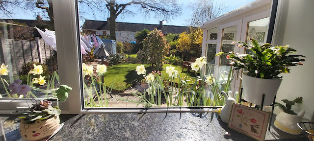 Isn't it cold today, typical bank holiday weather but I won't complain as it was glorious yesterday. Glad you managed to enjoy some time with all your children and grandchildren. What a lovely view from your kitchen window with all those flowers to look at.
